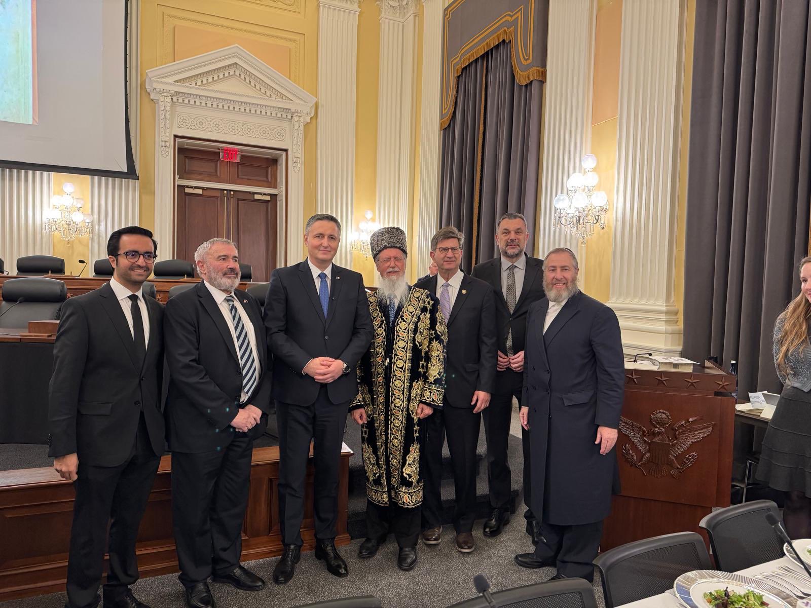 ה"סדר מודל" החגיגי, שנערך בבניין המשרדים הרשמי "קנון" (Cannon Building), הפך לזירת מפגש דיפלומטית ותרבותית יוצאת דופן. מי שעומד מאחורי היוזמה המרשימה והוצאתה לפועל הוא איש קשרי הממשל והלוביסט הבכיר עזרא פרידלנדר, באמצעות ארגון 'Project Legacy'. פרידלנדר, המוכר בפעילותו לחיזוק קשרים בין הקהילה היהודית לדרגים המדיניים בארה"ב, הצליח לרתום למאמץ את משרד החוץ של בוסניה והרצגובינה ולהביא לייצוג דו-מפלגתי מרשים של חברי קונגרס, בהם ג'וש גוטהיימר ובראד שניידר.
